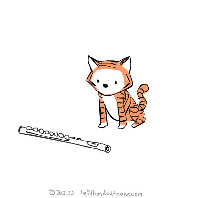 kat schrikt van dwarsfluit